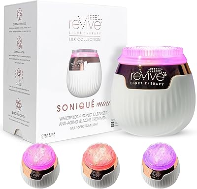 Revive Light Therapy Lux Collection Sonique Mini, Rechargeable Sonic Face Cleanser Brush with Medical-Grade Blue & Red Light Therapy for Face, Acne & Wrinkle Care, Water-Resistant, FSA HSA Eligible